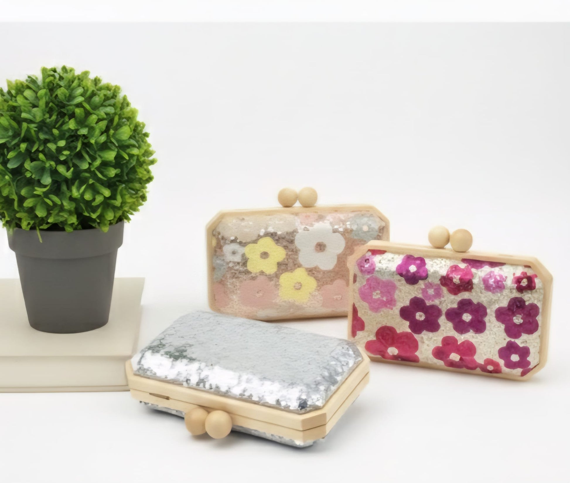 Bolso con detalles de madera y lentejuelas para eventos