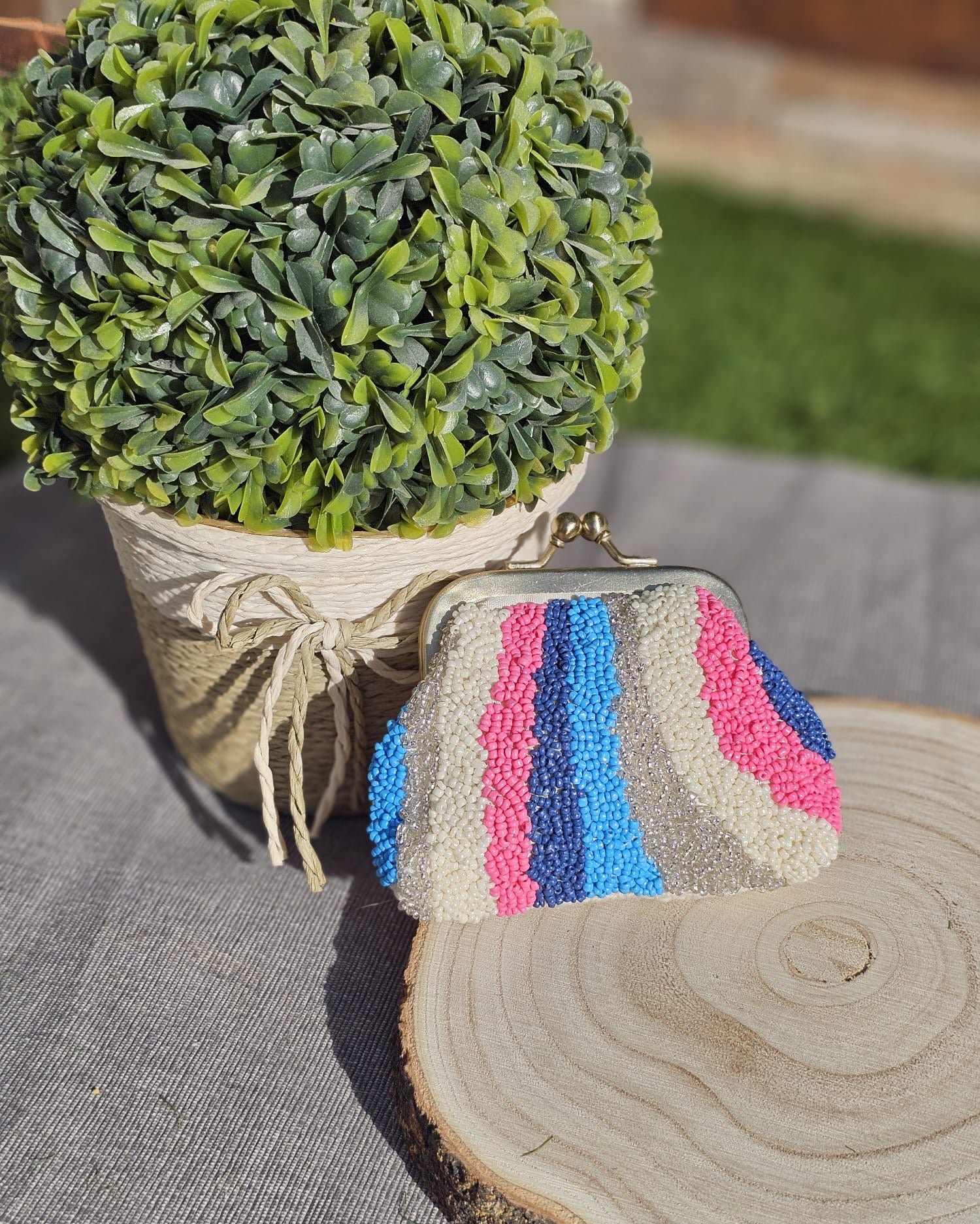 Monederos tipo clutch, con un aire retro con los cierres metálicos tipo “boquilla” y un diseño súper colorido y vibrante gracias a las cuentas y lentejuelas