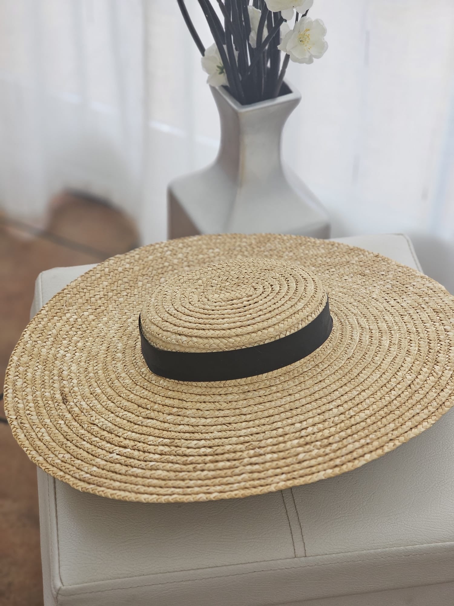 Pamela de rafia con cinta negra, sujeccion de diadema