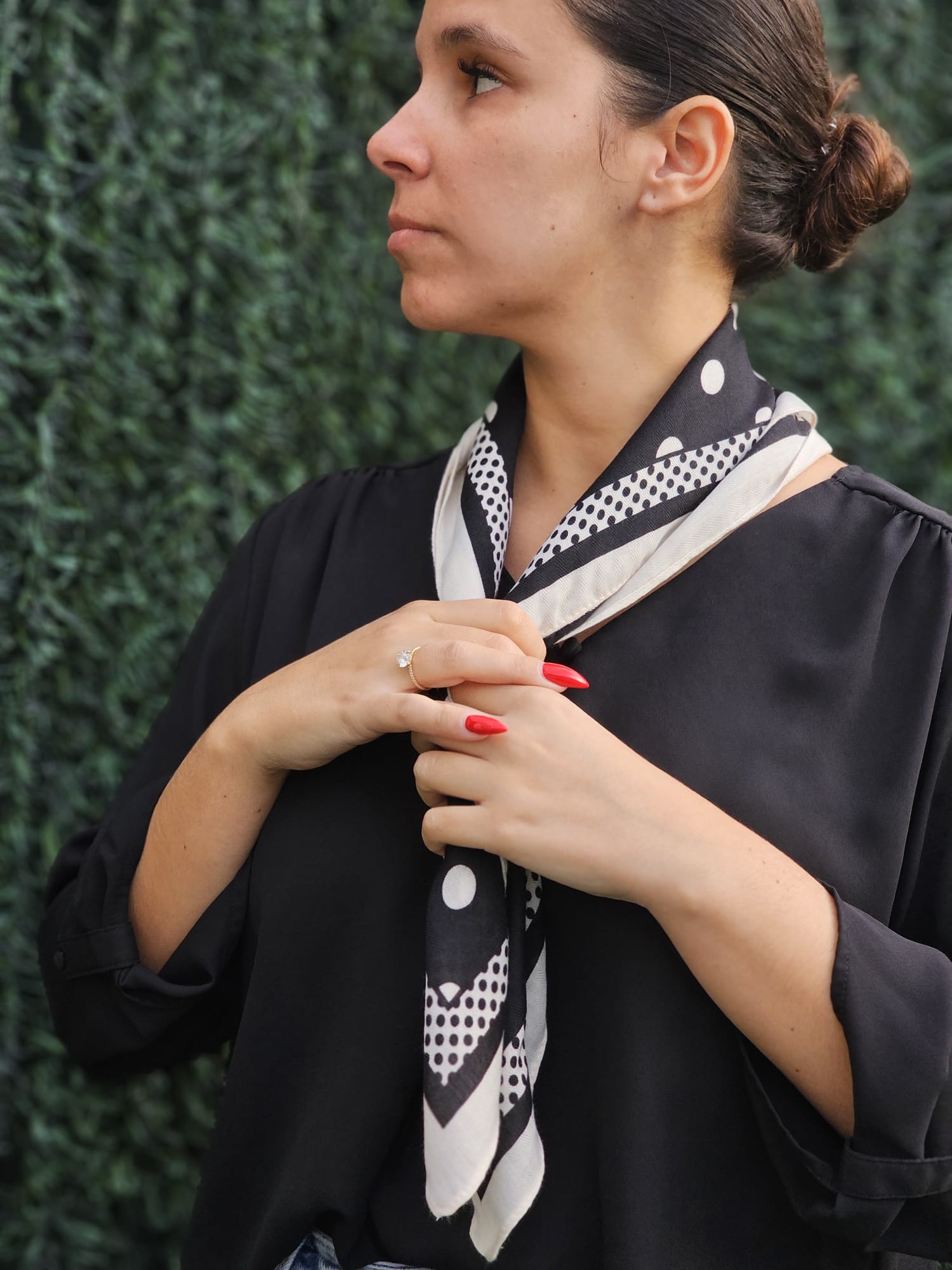 Pañuelo de lunares largo para usar tanto en el cuello como atado