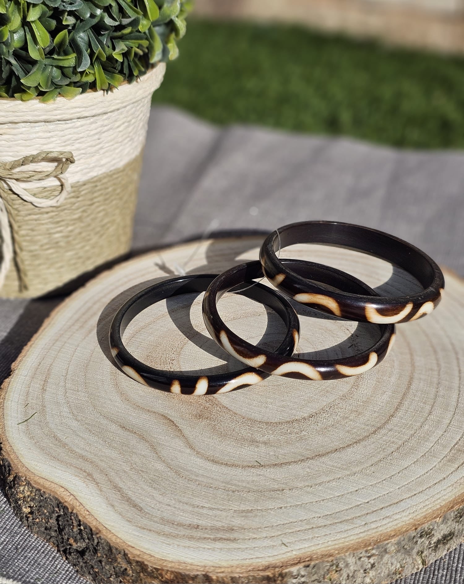 Pack de 3 pulseras de madera con estampado etnico